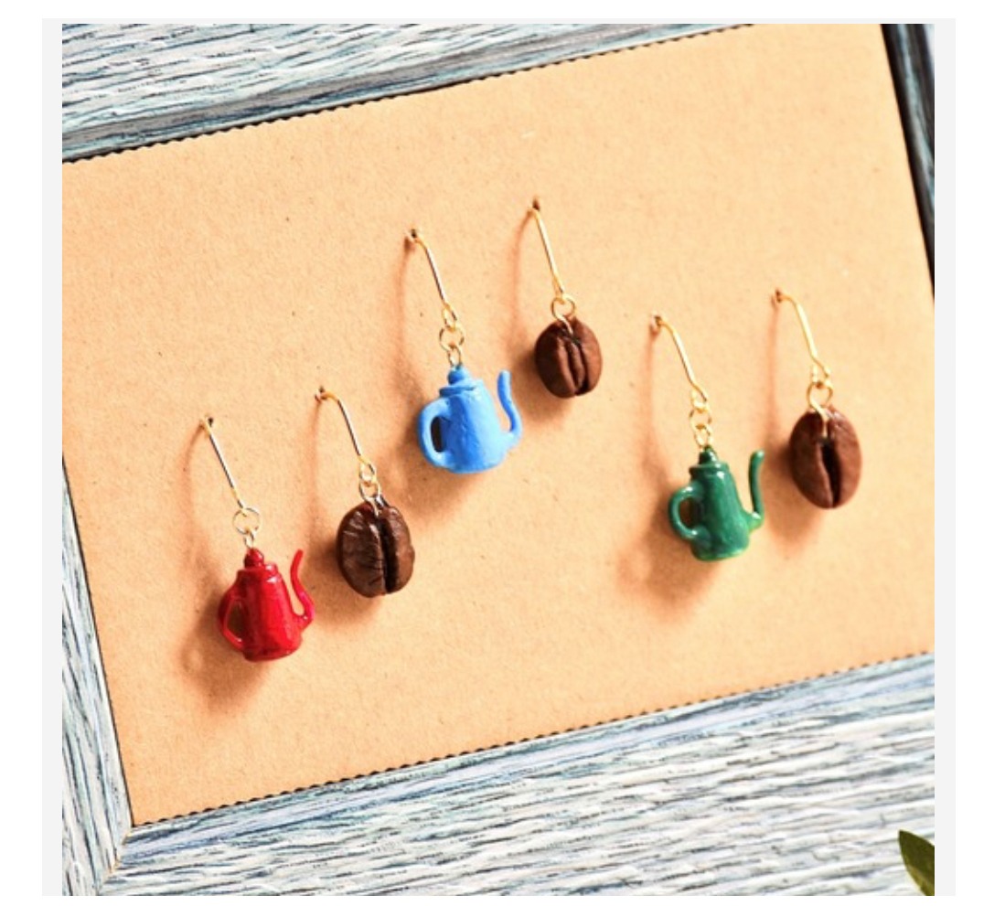 本物コーヒー豆をあしらったアクセサリー、動物モチーフ、カフェメニューモチーフの雑貨