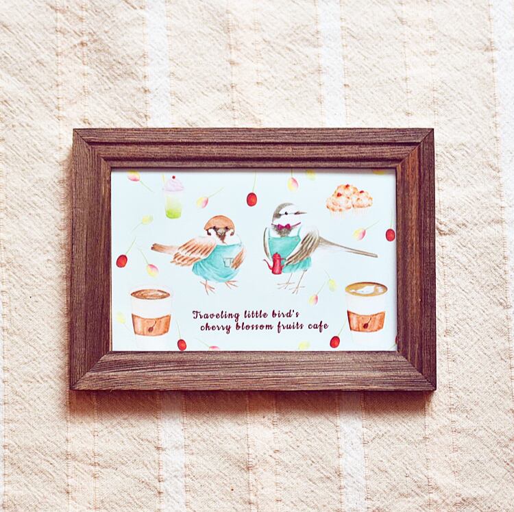 旅する小鳥の桜の実カフェ ポストカード2枚 & ステッカー2枚 セット【個別発送】