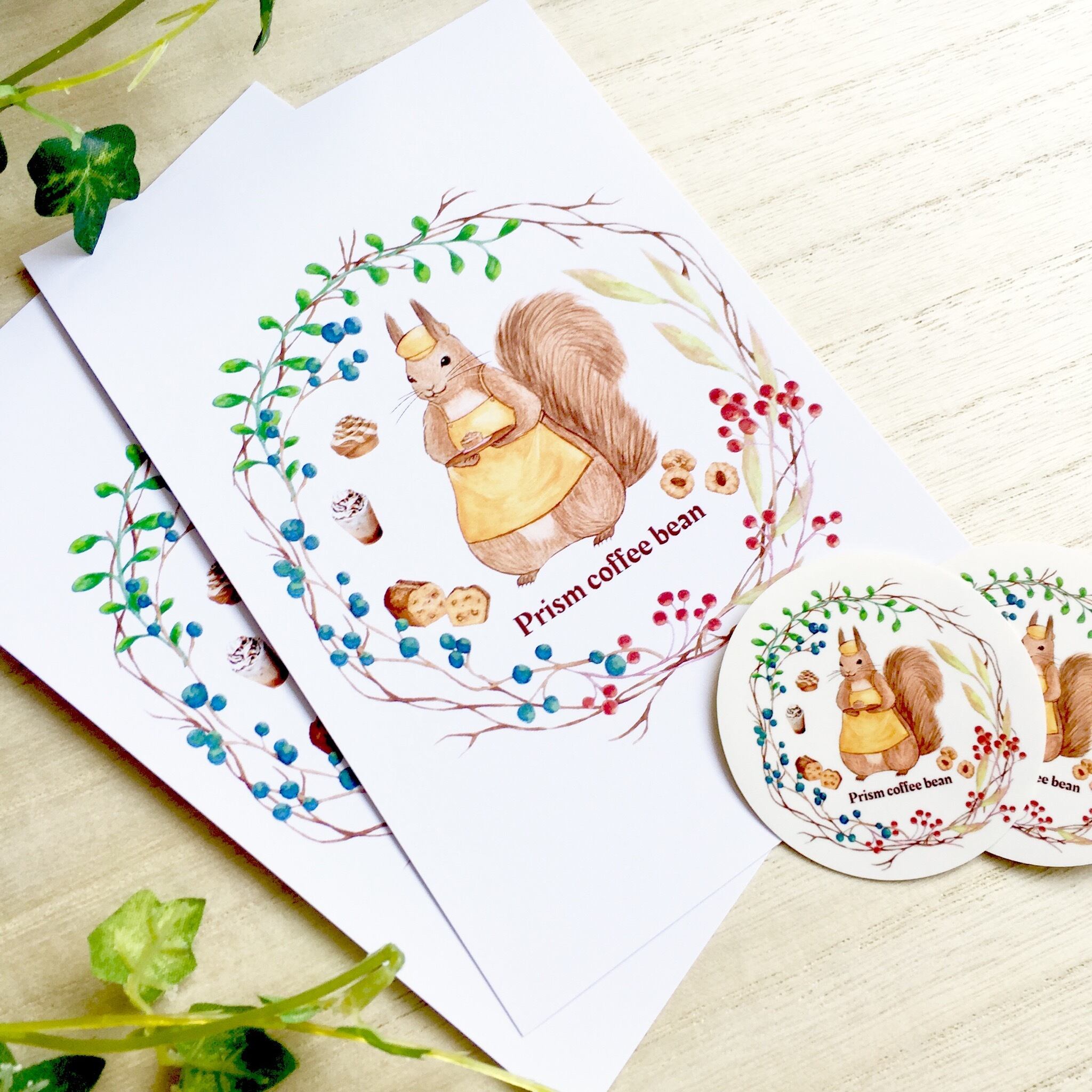 森の木の実のボタニカルカフェ ポストカード2枚 & ステッカー2枚 セット【個別発送】