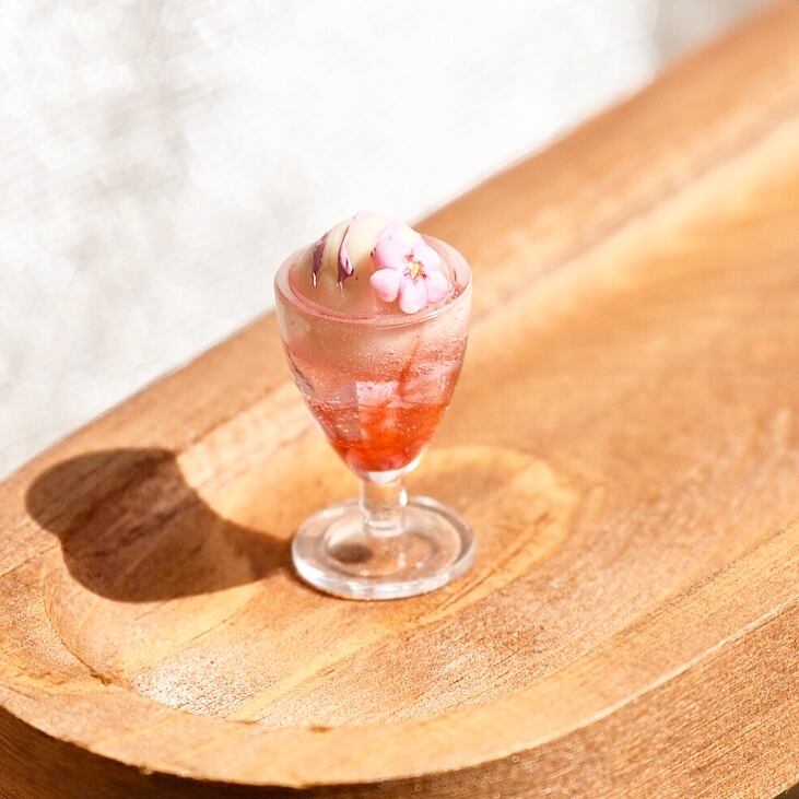 春の喫茶店*いちごと桜のクリームソーダ ミニチュア 1点 オリジナルディスプレイ台紙付き【個別発送】