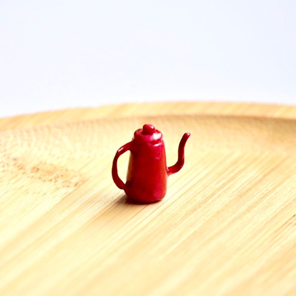 路地裏の喫茶店*レトロポップな琺瑯風コーヒーケトル(コーヒーポット) マルーンレッド 1/8〜1/12サイズ ミニチュア 1点 オリジナルディスプレイ台紙付き【個別発送】
