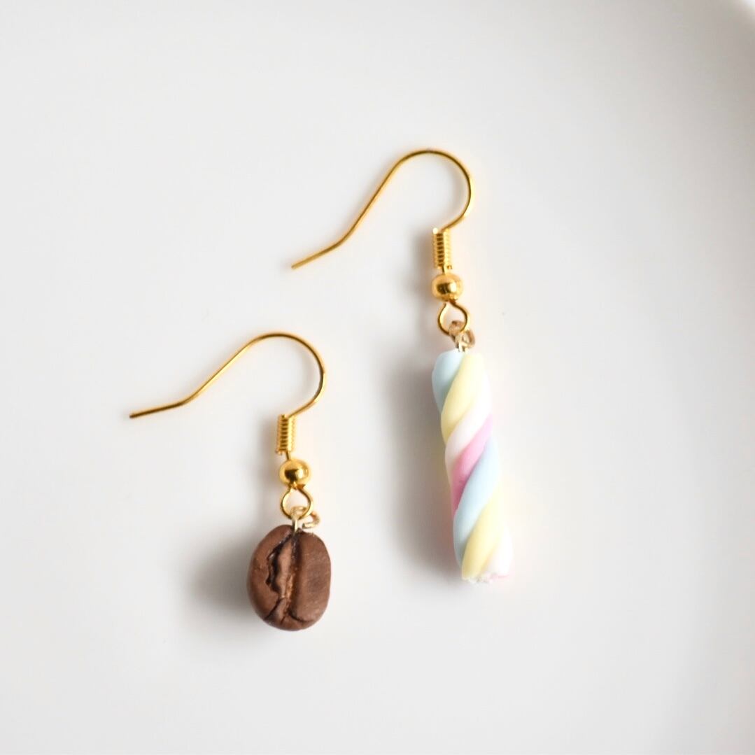 ミニチュアパティスリーカフェ*くるくるゆめかわパステルマシュマロと本物コーヒー豆ピアス/イヤリング【個別発送】