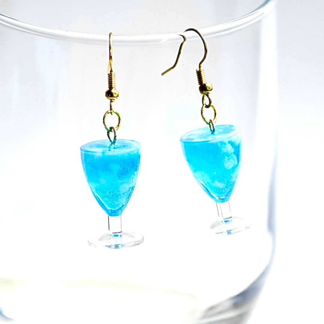 路地裏の喫茶店*雲が広がる青空のスカッシュ(ソーダ・サイダー) ミニチュア ピアス/イヤリング オリジナルディスプレイ台紙付き【個別発送】