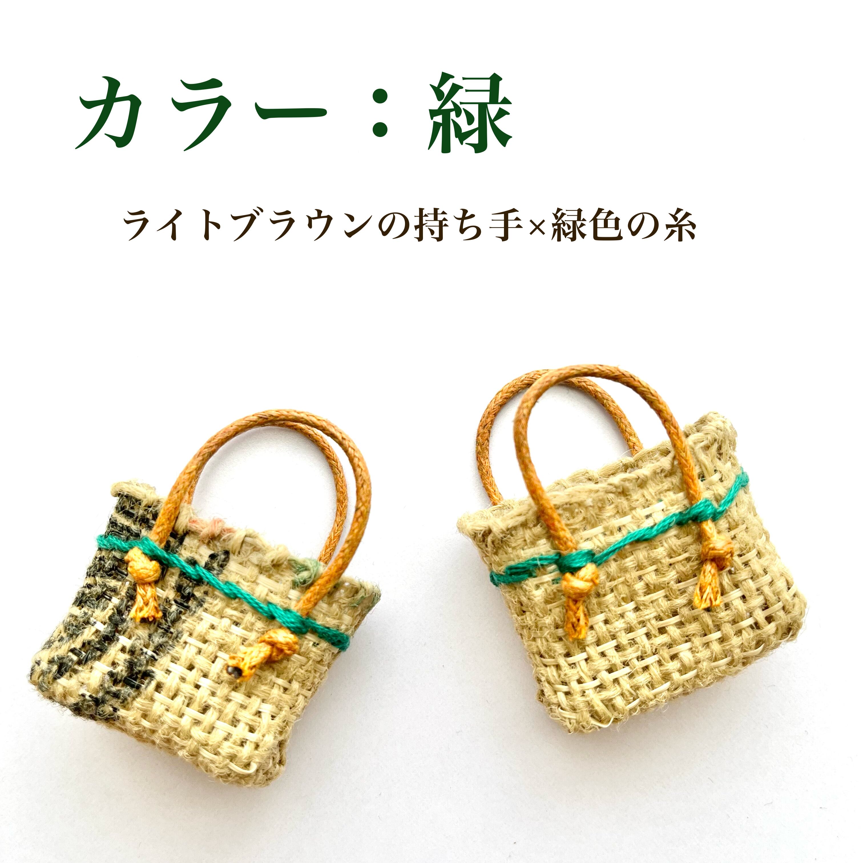 本物コーヒー豆の麻袋から作ったミニチュアトートバッグ 緑×無地タイプ(ドール・フィギュア用 1/6〜1/12対応)【個別発送】
