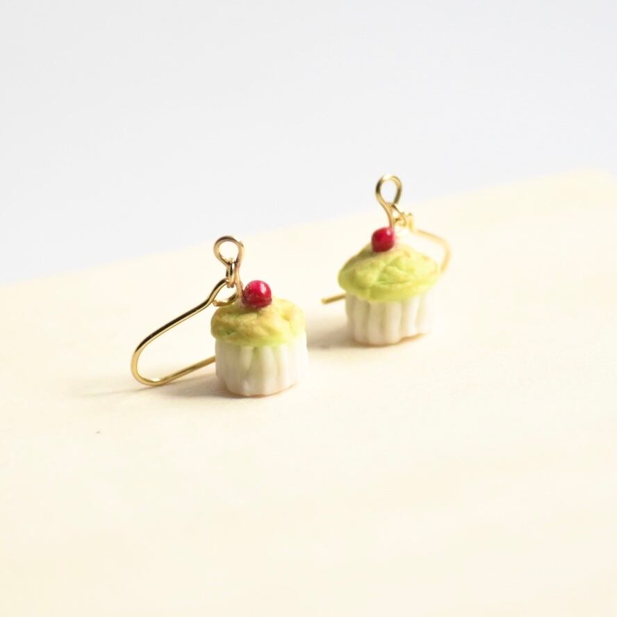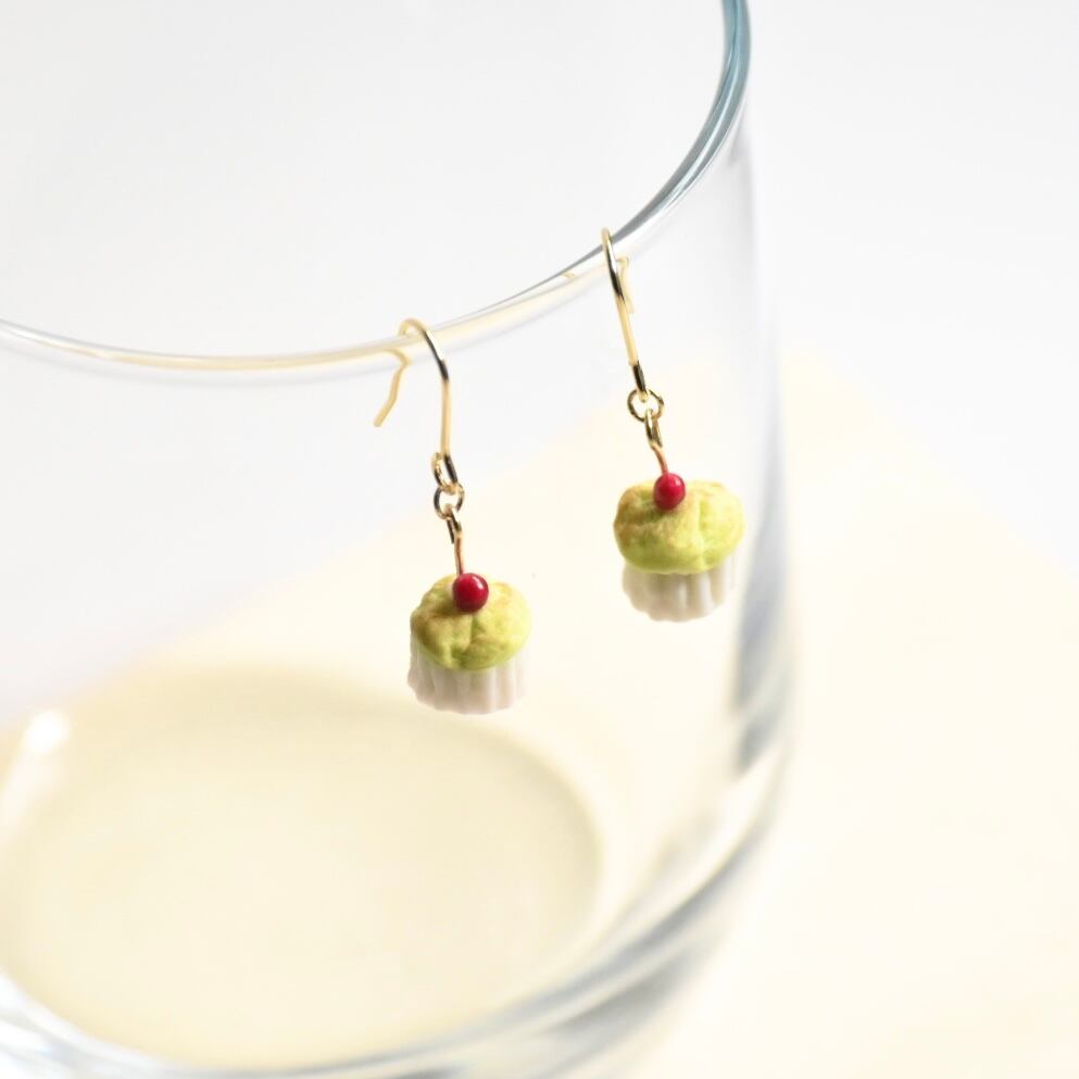 旅する小鳥の桜の実カフェ*ミニチュア抹茶マフィンピアス/イヤリング【個別発送】