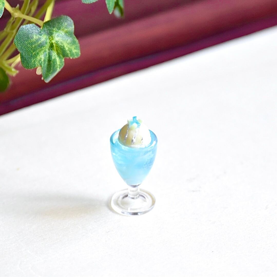 冬の喫茶店*ふわりと舞い降りた雪のクリームソーダ(フロート) ミニチュア 1点 オリジナルディスプレイ台紙付き【個別発送】