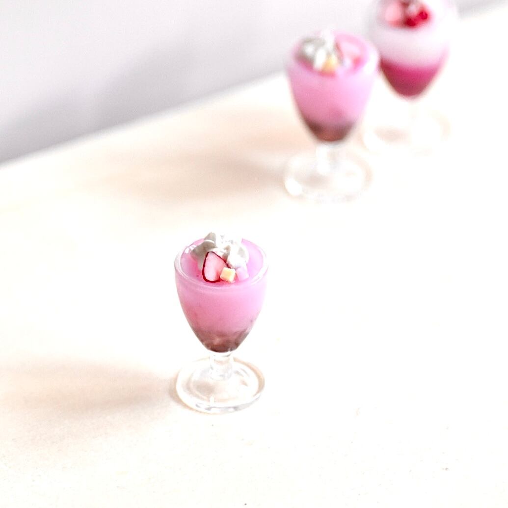 パステルテディベアのジェラートカフェ*いちごみるくなアイスカフェモカ(カフェオレ・カフェラテ) ミニチュア 1点 オリジナルディスプレイ台紙付き【個別発送】