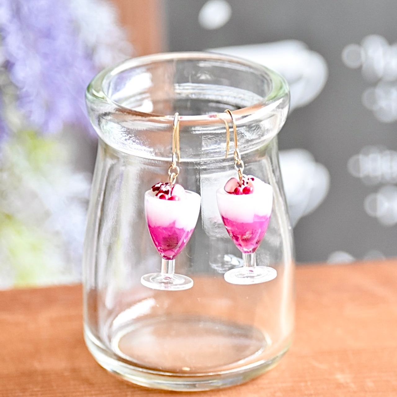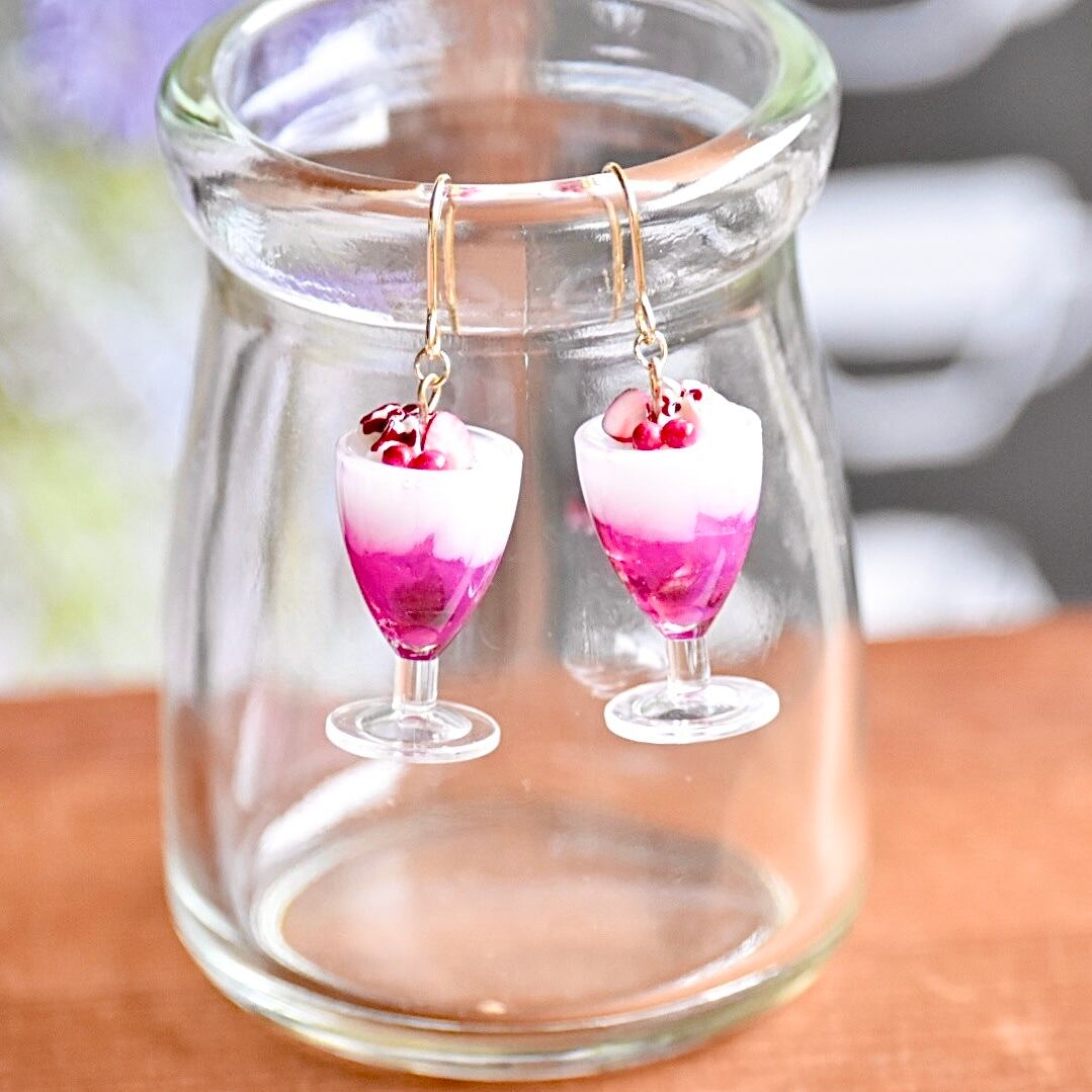 秋の喫茶店*スイートベリーなアイスカフェモカ(カフェオレ) ミニチュア ピアス/イヤリング オリジナルディスプレイ台紙付き【個別発送】