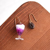秋の喫茶店のドリンクメニューをイメージした、オリジナルカフェドリンクのミニチュアをあしらったピアス/イヤリングです。