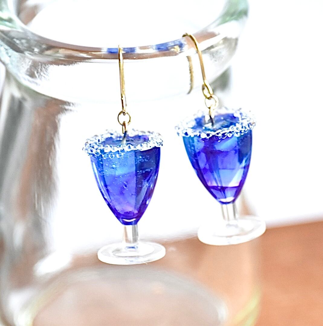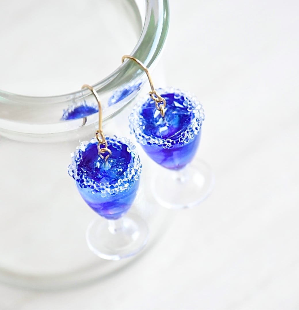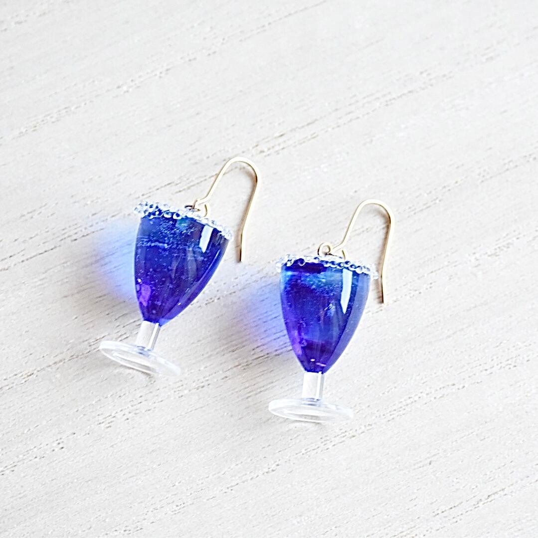 冬の喫茶店*きらきらシュガーの星空スカッシュ(ソーダ・サイダー) ミニチュア ピアス/イヤリング オリジナルディスプレイ台紙付き【個別発送】