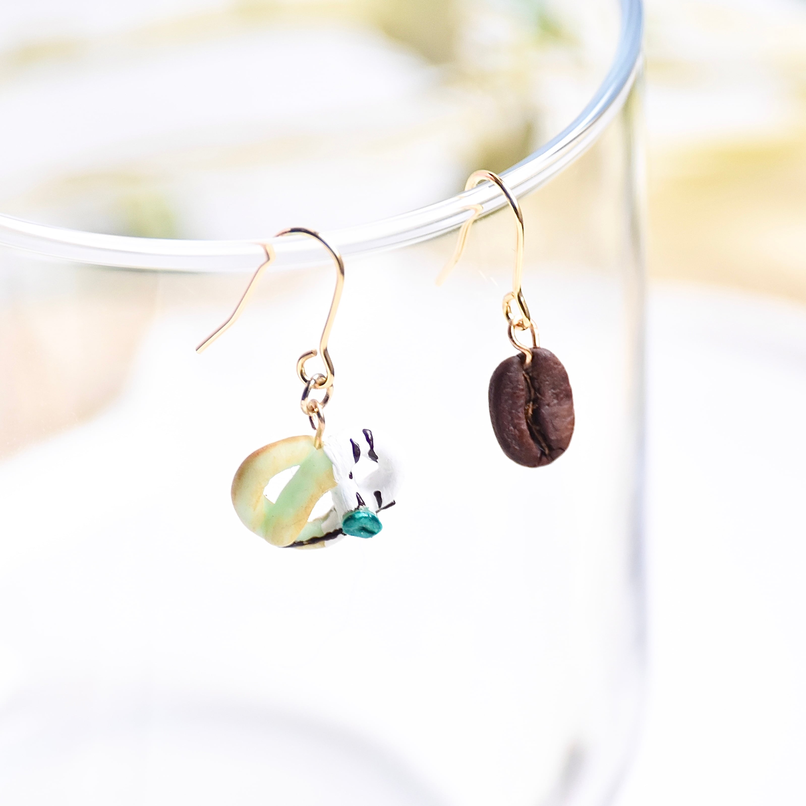 もう片方の耳でゆらゆら一緒に揺れるのは、ちょこんとしたサイズ感がかわいいコーヒー豆。