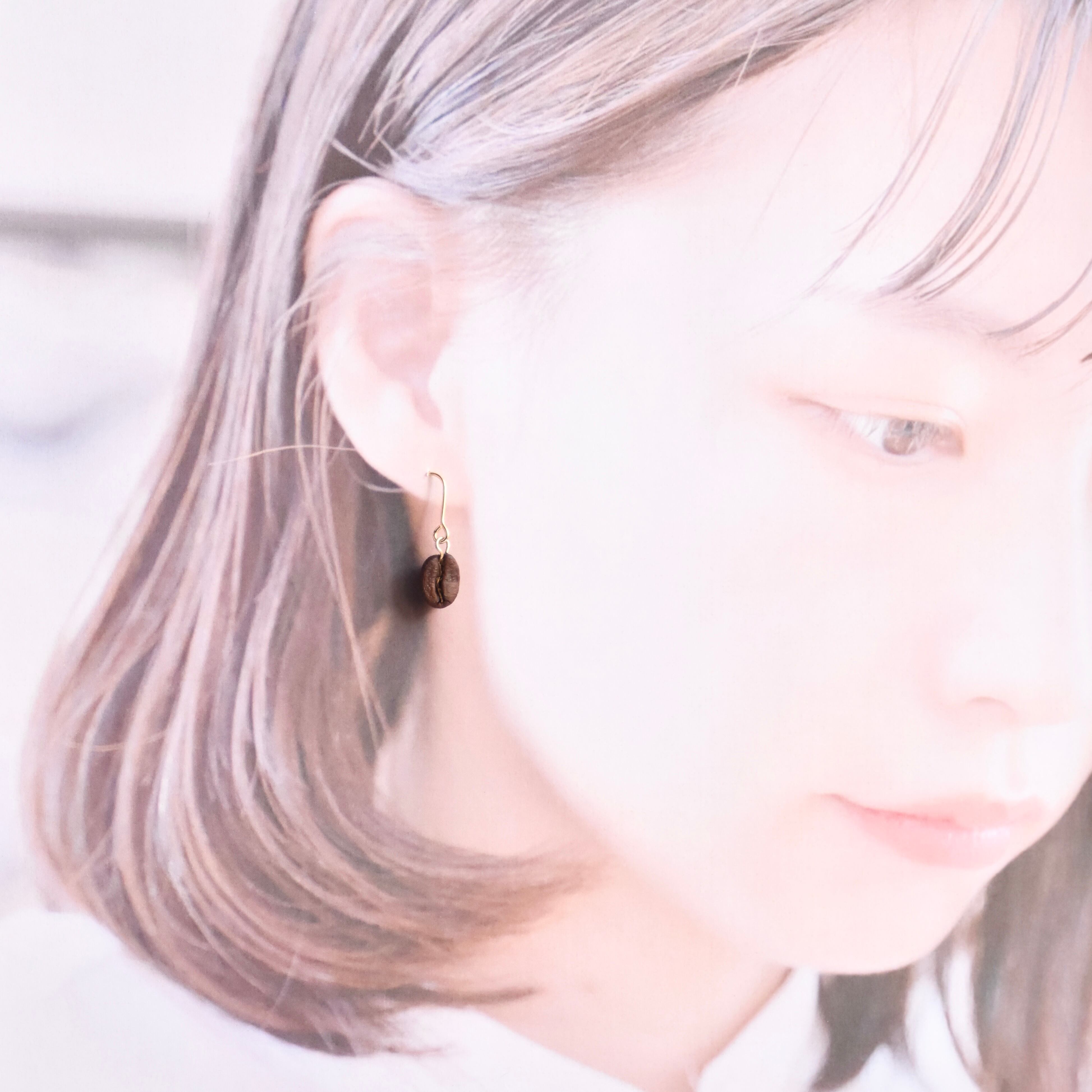 もう片方の耳でゆらゆら一緒に揺れるのは、ちょこんとしたサイズ感がかわいいコーヒー豆。