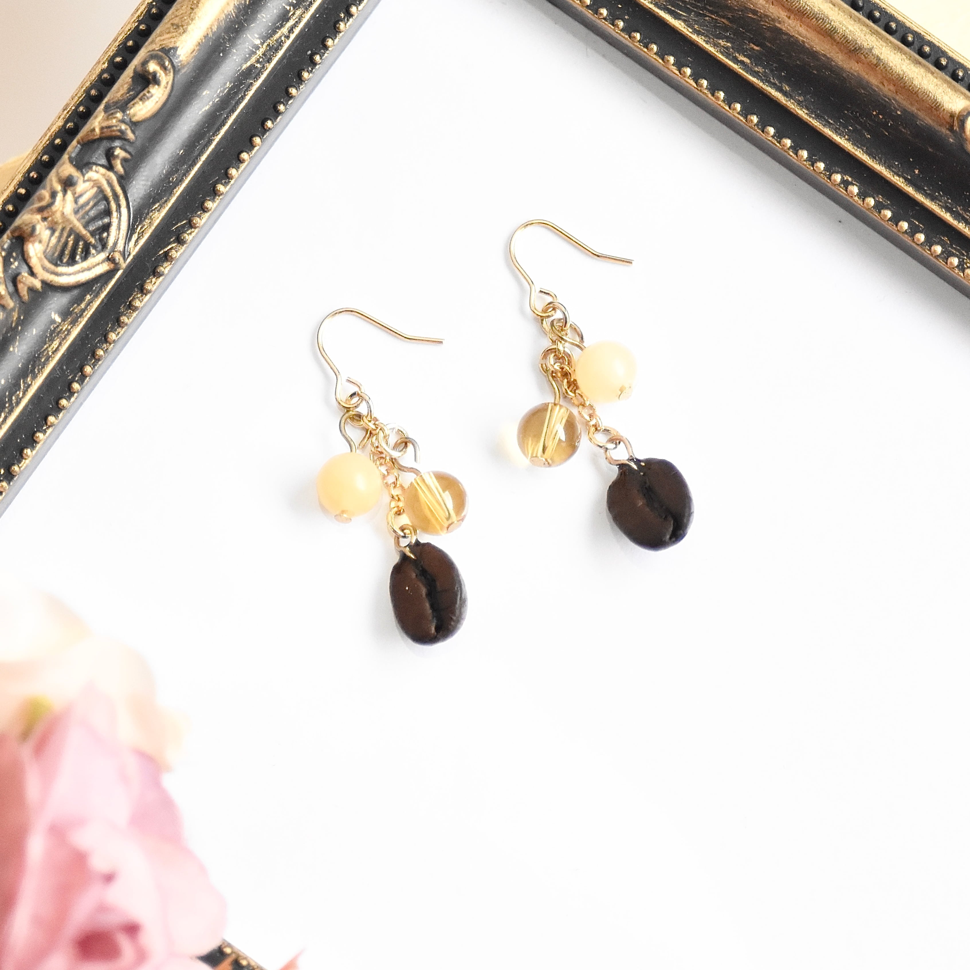 大人の上品さを演出してくれる、コーヒー豆と天然石をあしらったエレガントなピアス/イヤリングです。