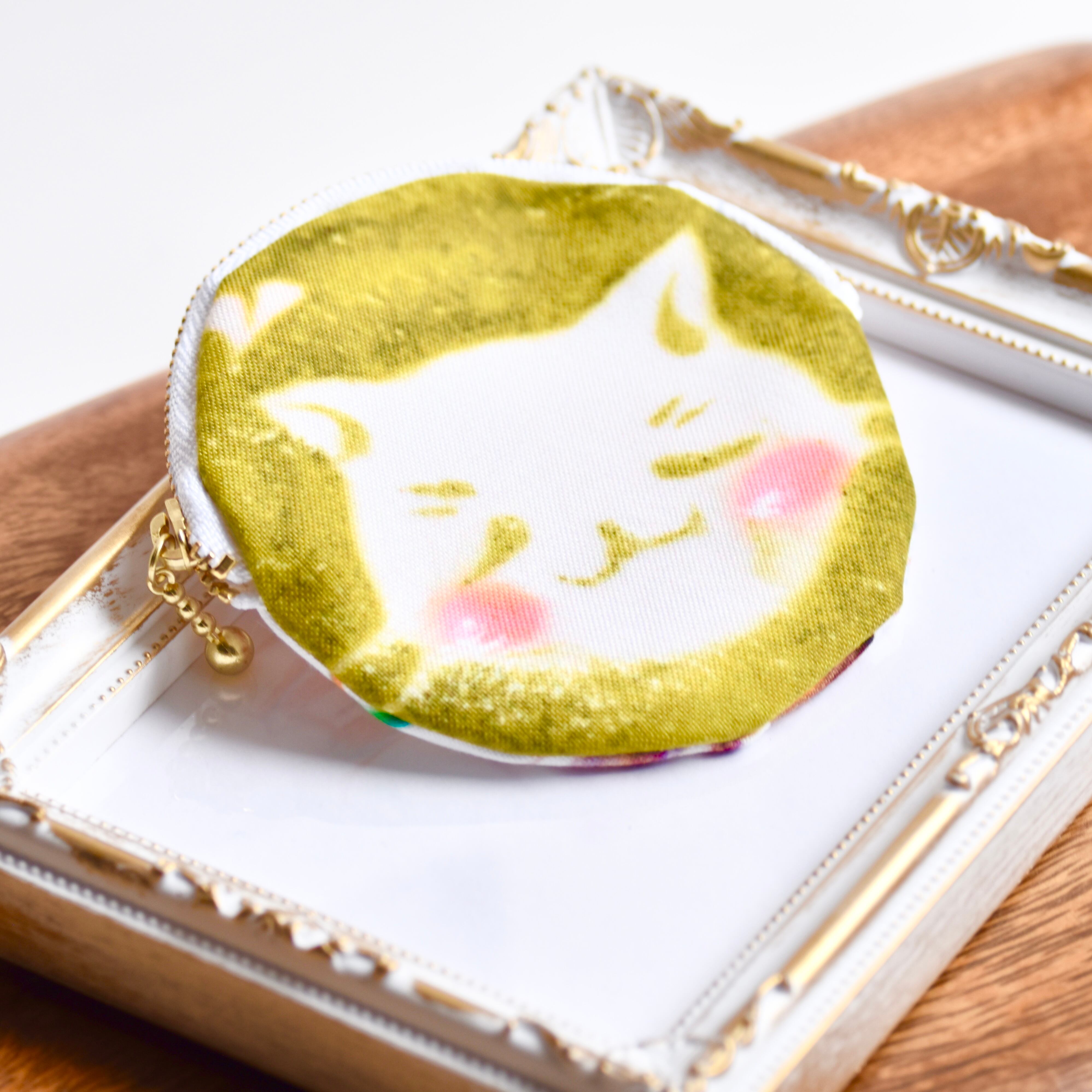オリジナルカフェラテアートのまんまるサークル(円形)フラットポーチ/抹茶と白猫【個別発送】(珈琲/ラテアート/喫茶/バリスタ/大人/ゆるかわいい/イラスト/ナチュラル/ほっこり/シンプル/生活雑貨/プレゼント/メイクポーチ/ケース/小物入れ/ミニポーチ/まんまる/丸/実写/リアル/カラフル/水彩画/プチギフト/カフェ好き/コーヒー/日常/普段使い/裏地付き/スリム/リップ/飴/鮮やか/一点物/レトロ/ヴィンテージ風/手描き/にゃんこ/ゆるかわいい/ゆるキャラ/グリーン/緑/白/ホワイト/ブラウン/茶色)