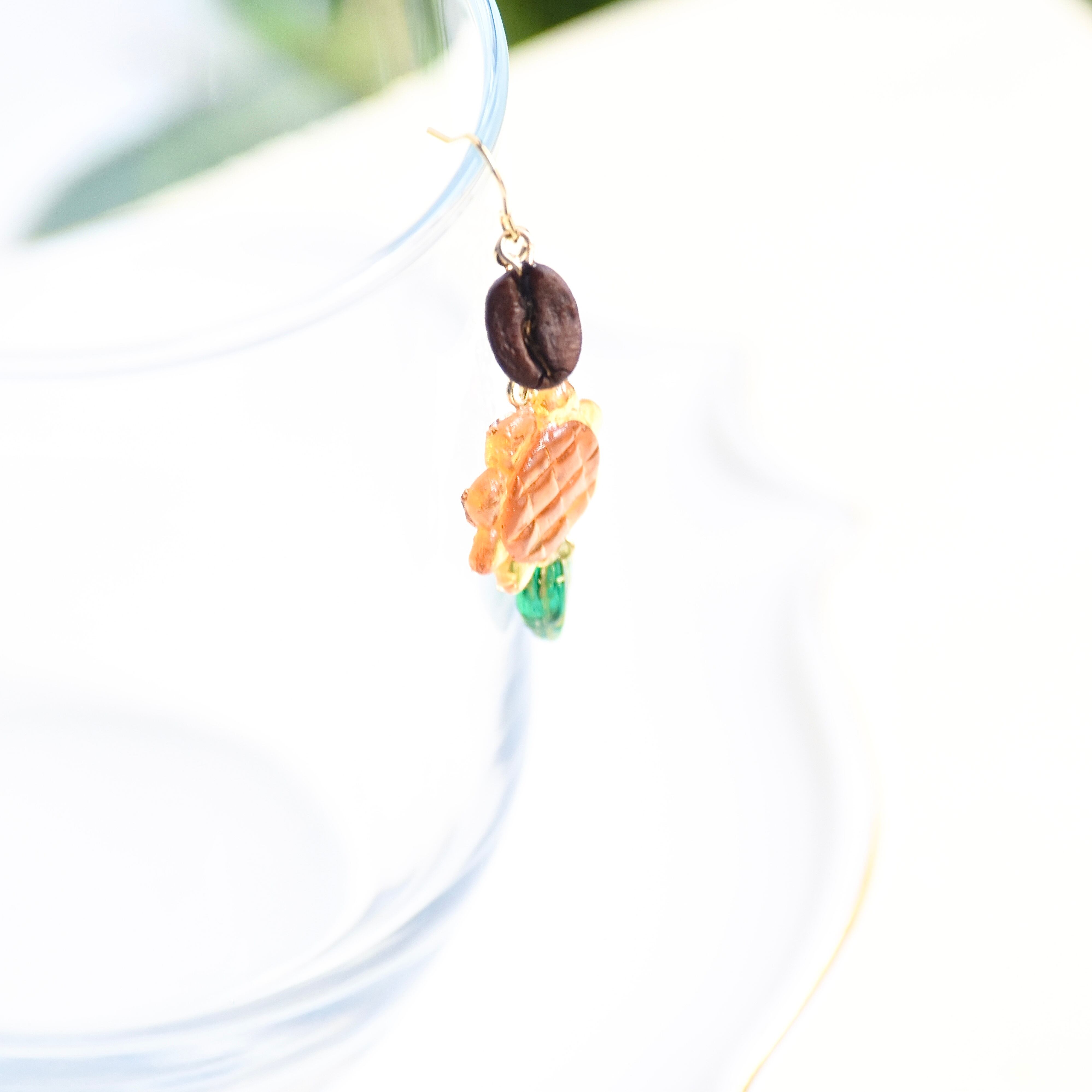 【片耳用タイプ】うつろう季節の水彩庭園カフェ*きらきら向日葵の小さなキャンディーとチェコビーズ&本物コーヒー豆ピアス/イヤリング イエロー×ブラウン【個別発送】(珈琲豆/スイーツ/飴/色ガラス風/ひまわり/シンプル/ナチュラル/韓国/春夏/アクセサリー/フェイク/フラワー/喫茶/色ガラス/大人かわいい/ボヘミアン/花/北欧/エスニック/カントリー/個性派/リアル/カラフル/素朴/天然/自然/ナチュラル/ワンポイント/チェーン/ゆらゆら/リーフ/アクセント/つやつや/透明感/クリア/きれいめ/上品