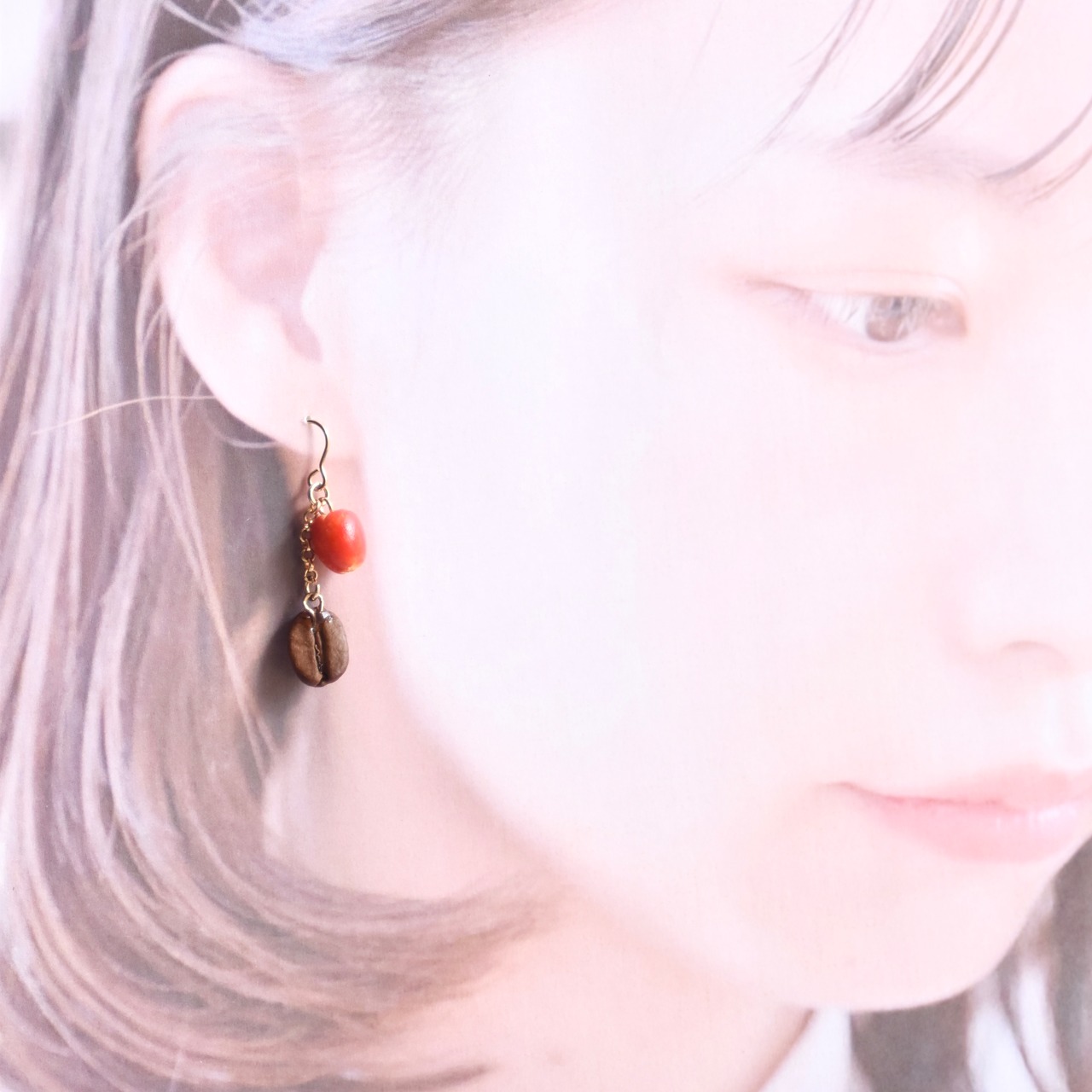 こちらは鮮やかな赤りんご(赤林檎)とコーヒー豆をあしらったピアス/イヤリング。