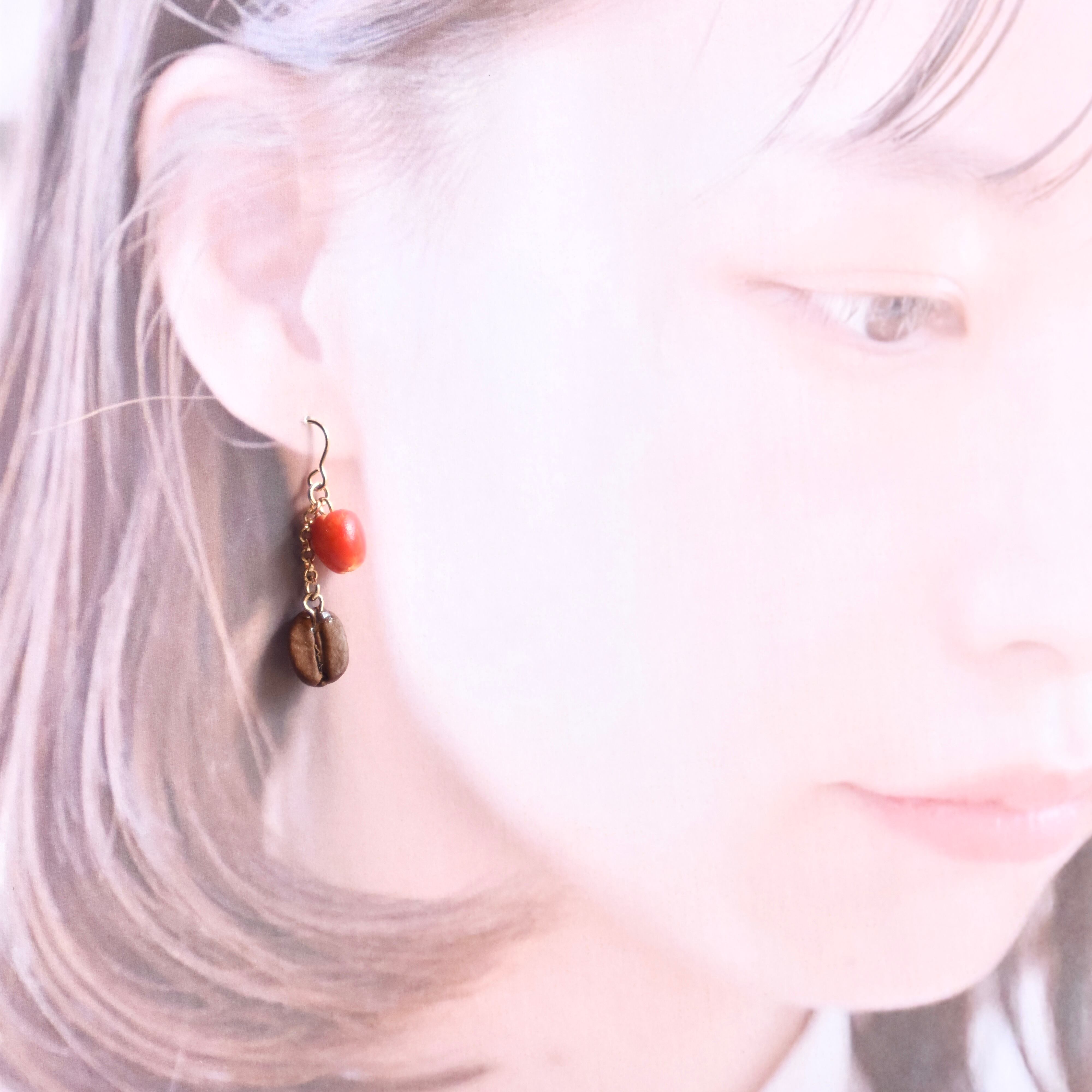 トゥインクルフルーツパーラー*森で採れた赤りんご&本物コーヒー豆ピアス/イヤリング 『tart』【個別発送】【個別発送】(珈琲豆/スイーツ/ケーキ/果物/フルーツ/喫茶/リアル/大人かわいい/シンプル/カジュアル/きらきら/セット/アクセサリー/北欧/エスニック/カントリー/ボタニカル/天然/自然/個性派/カラフル/スイーツ/フード/細工/素朴/天然/ナチュラル/ワンポイント/アクセント/コーディネート/木の実/バイカラー/2色/鮮やか/レッド/赤/レトロ/ブラウン/焦げ茶/ゆらゆら/チェーン/きれいめ)