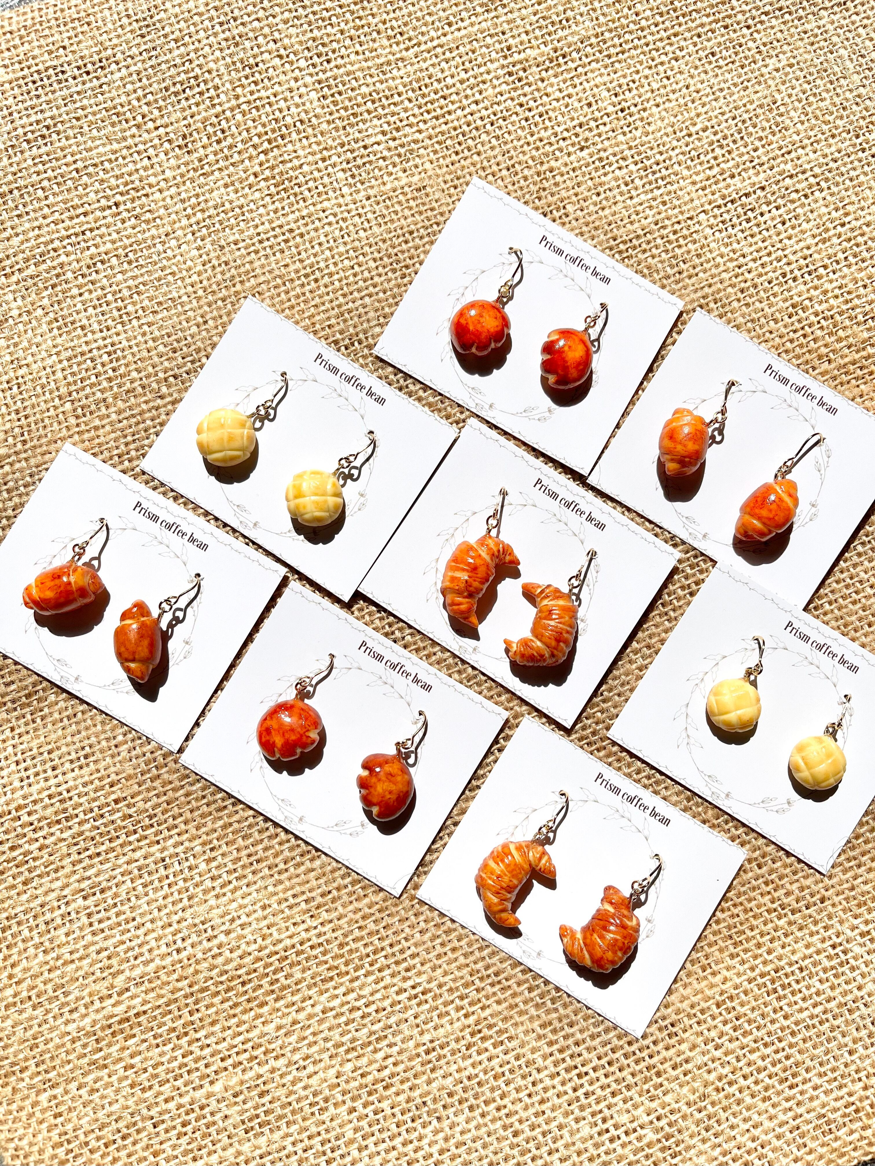 ベーカリーカフェのメニューをイメージした、ペストリーやパンのミニチュアのピアス/イヤリングです。