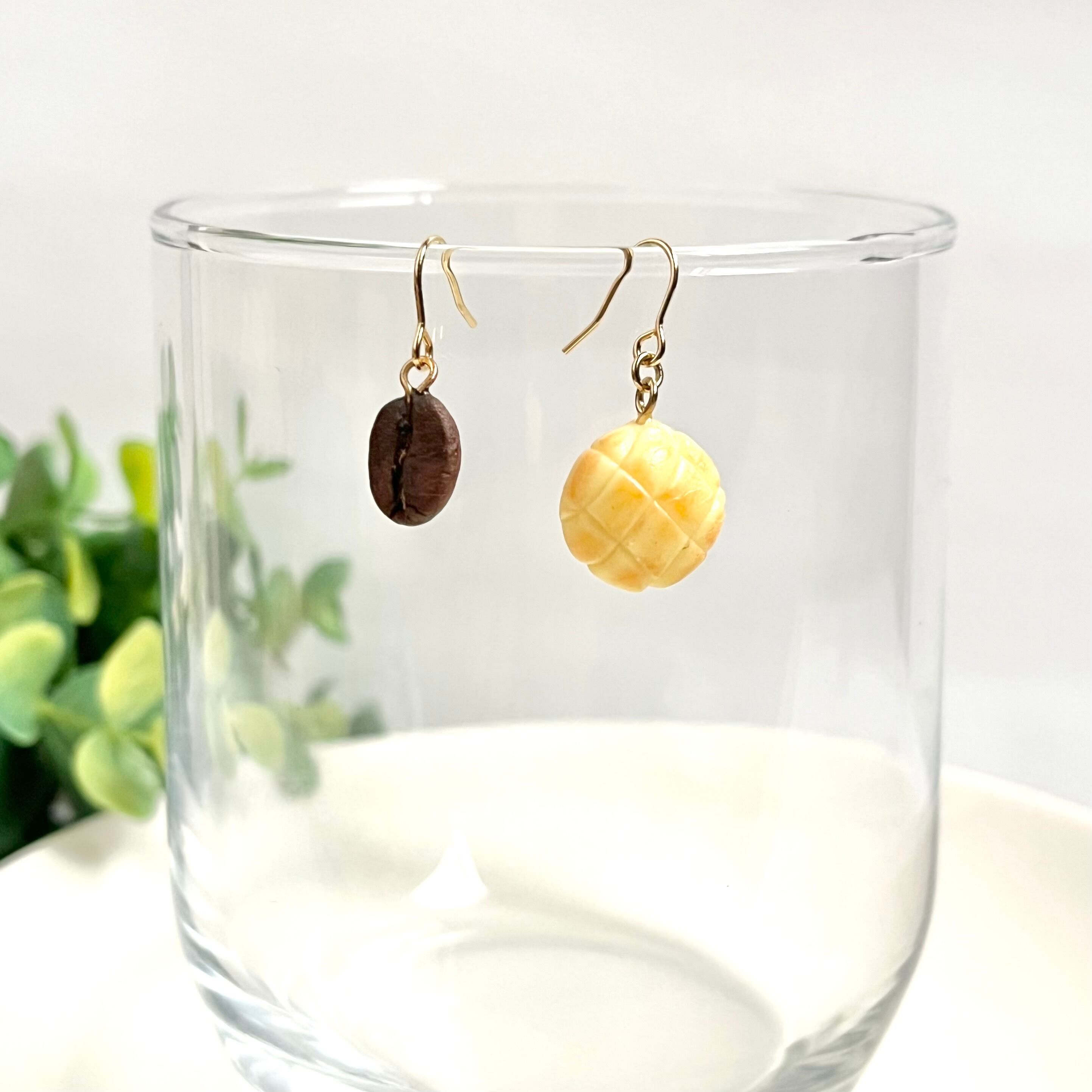 ミニチュアベーカリーカフェ*ふわふわメロンパンと本物コーヒー豆ピアス/イヤリング【個別発送】(珈琲豆/スイーツ/フード/フェイク/喫茶/ユニーク/リアル/大人かわいい/カジュアル/シンプル/セット/お菓子/クッキー/ビスケット/ケーキ/食べ物/おやつ/パステル/イエロー/黄色/ブラウン/茶色//レトロ/小さめ/ナチュラル/アクセント/ワンポイント/パン屋/コーヒー好き/カフェ/プレゼント/ギフト/お祝い/誕生日/記念日/推し活/プチプラ/カジュアル/ラフ/コーディネート/女子会/ランチ/デート/個性派)