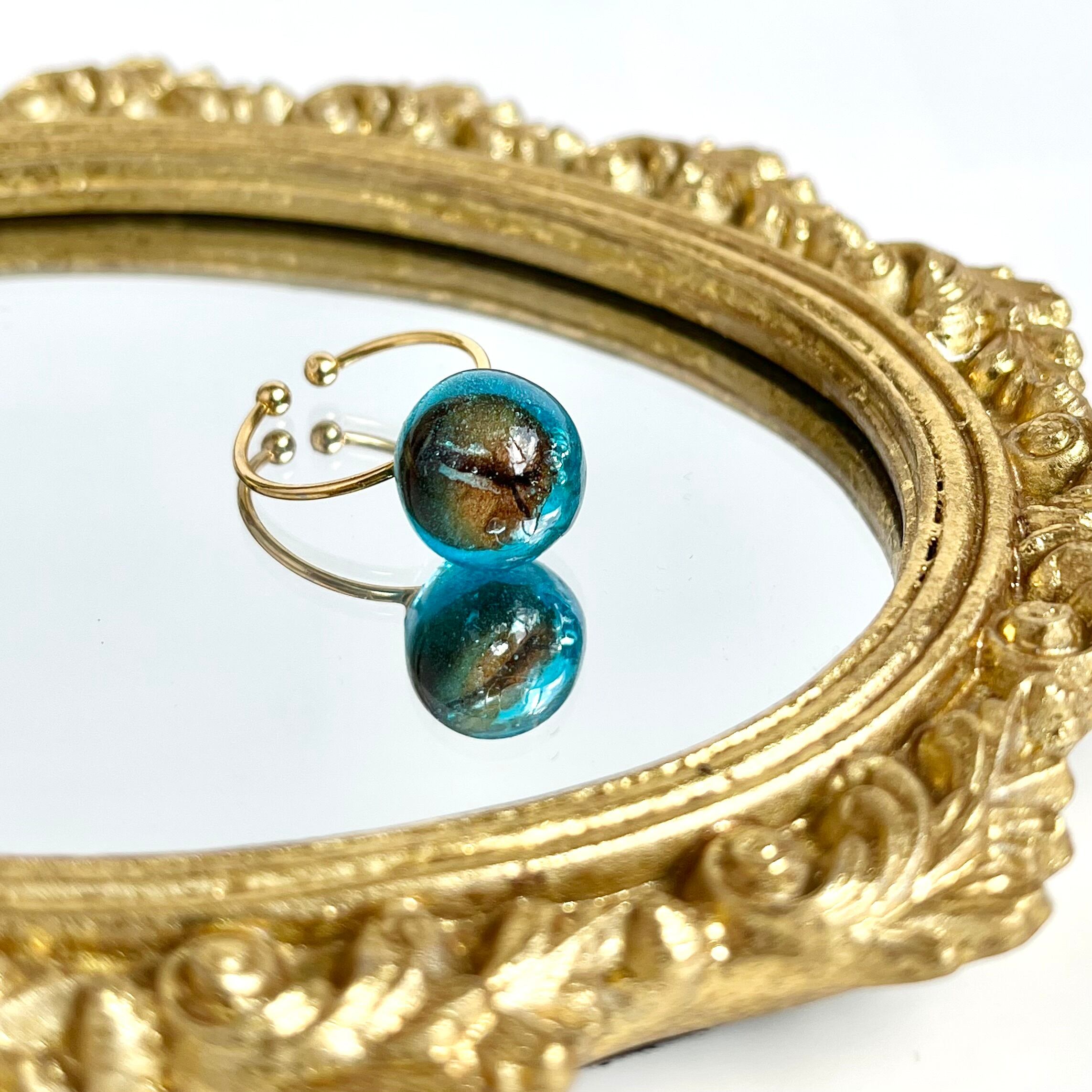 本物のコーヒー豆を封じ込めたまんまるリング(フリーサイズ) 青空のきらきら珈琲琥珀*コバルトブルー【個別発送】(珈琲豆/アクセサリー/喫茶/バリスタ/カフェ雑貨/天然/きらきら/ナチュラル/韓国/シンプル/おしゃれ/オケージョン/きれいめ/ボタニカル/上品/エレガント/アンティーク風/ヴィンテージ風/大人かわいい/コーヒー好き/カフェ/プレゼント/ギフト/お祝い/誕生日/記念日/推し活/カジュアル/個性派/透明感/クリアカラー/緑/色ガラス風/水晶玉風/ジュエリー風/宝石風/ストーン風/つやつや/春夏冬)