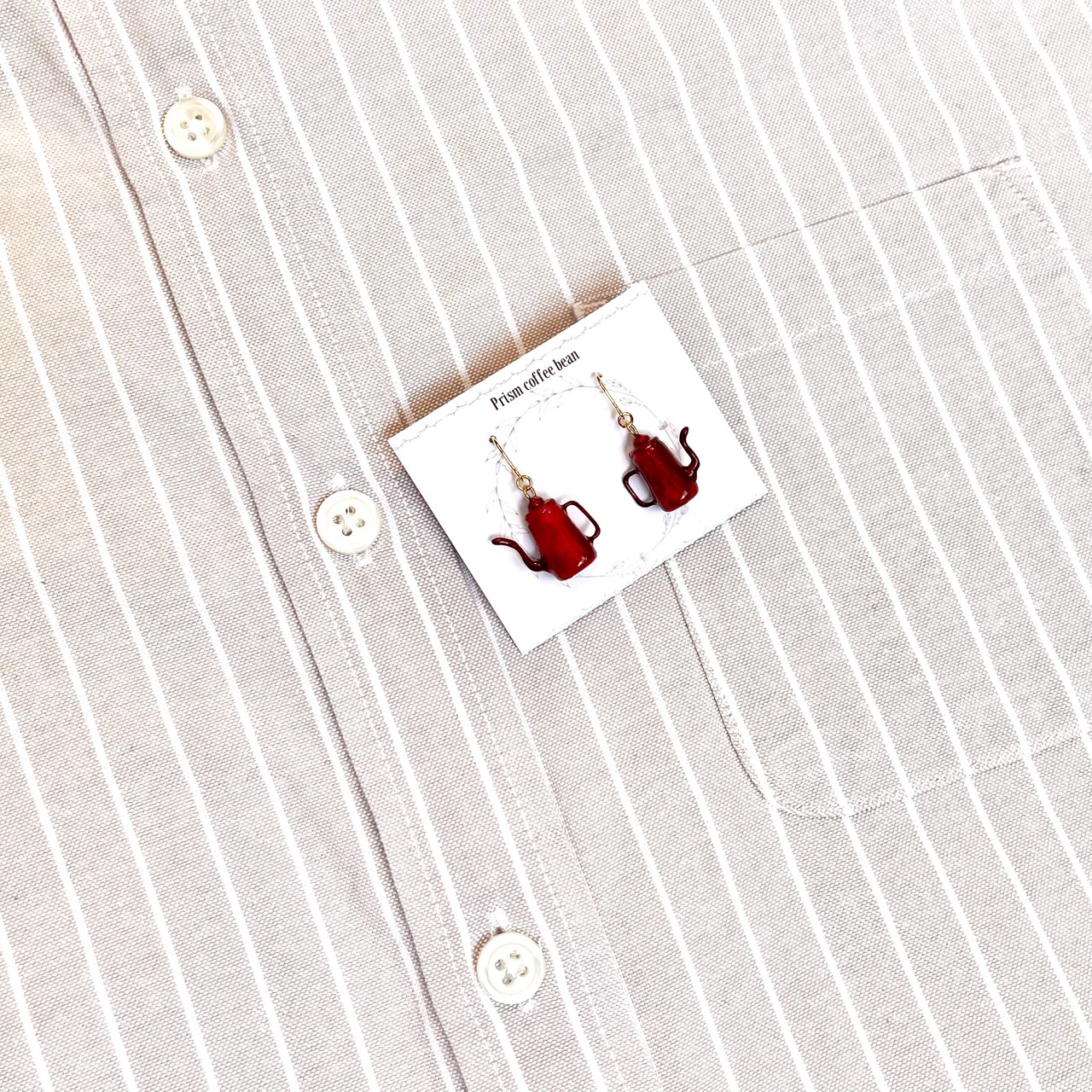 路地裏の喫茶店*レトロポップな琺瑯風コーヒーケトル(コーヒーポット) マルーンレッド ピアス/イヤリング【個別発送】(ミニチュア/個性/リアル/カジュアル/シンプル/北欧/赤/紅/和風/珈琲/カフェ/珈琲/アクセサリー/バリスタ/カフェ雑貨/大人かわいい/ナチュラル/韓国/シンプル/おしゃれ/北欧/ボヘミアン/カントリー/エスニック/ボタニカル/アンティーク風/ヴィンテージ風/コーヒー好き/プレゼント/ギフト/お祝い/誕生日/記念日/推し活/ユニーク/カラフル/ラフ/コーディネート/個性派/ほっこり/