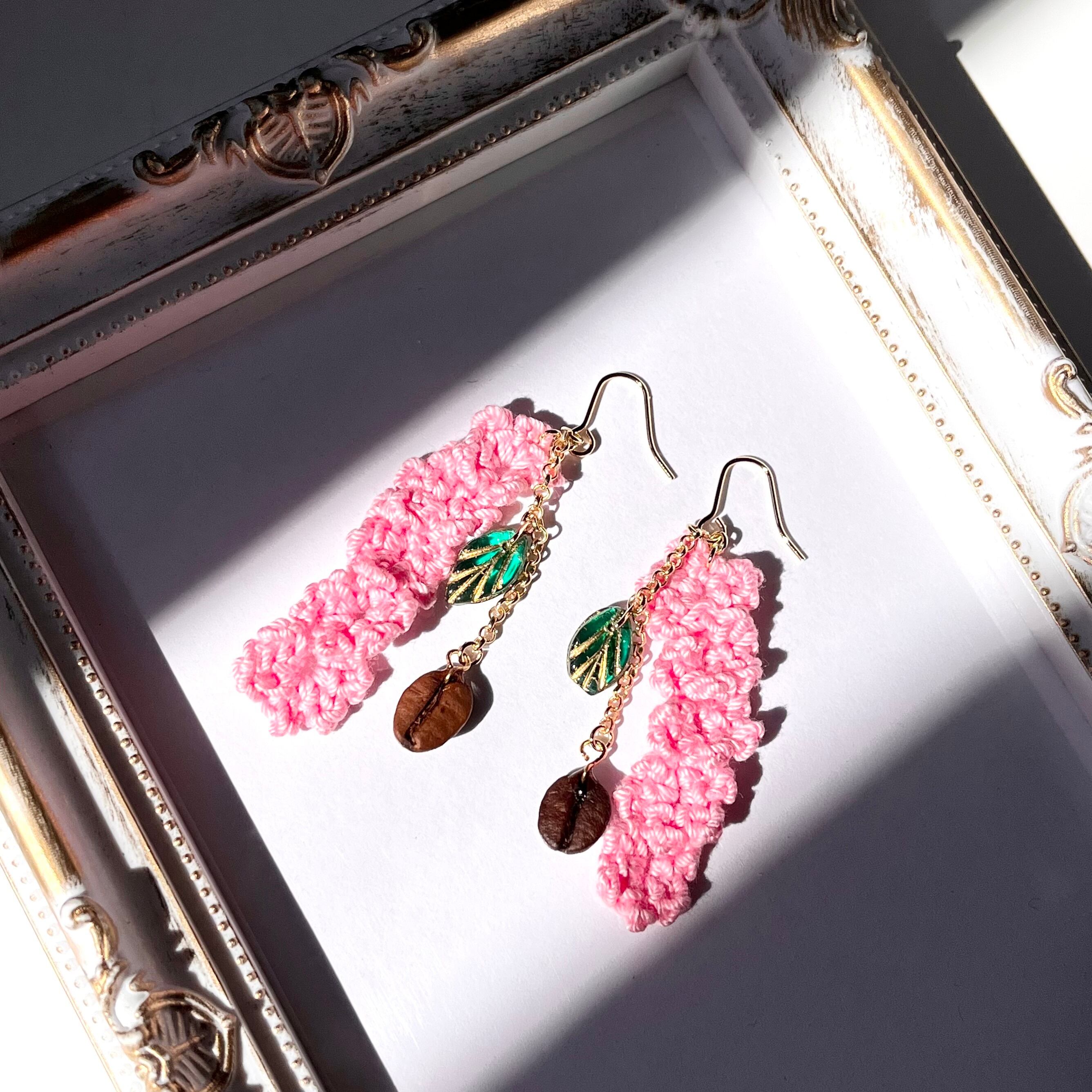 素材:コットンレース糸・チェコビーズ・チェーン・コーヒー豆