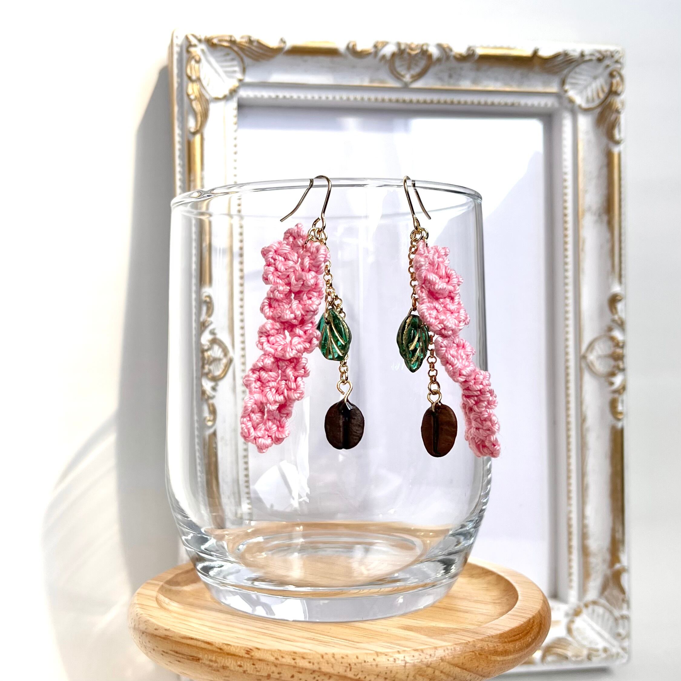 うつろう季節の水彩庭園カフェ*ふわふわ乙女桜とチェコビーズ&本物コーヒー豆ピアス/イヤリング【個別発送】(珈琲豆/アクセサリー/フラワー/レース/喫茶/シンプル/色ガラス/大人かわいい/ボヘミアン/春秋/ふわふわ/花/北欧/エスニック/カントリー/個性派/リアル/カラフル/素朴/天然/自然/ナチュラル/ワンポイント/アクセント/コーディネート/葉/グリーン/緑/ブラウン/焦げ茶/ロング/チェーン/ゆらゆら/主役/アクセント/色ガラス/透明感/クリア/桃/ピンク/さくら/花/春/梅雨/紫陽花/アジサイ)