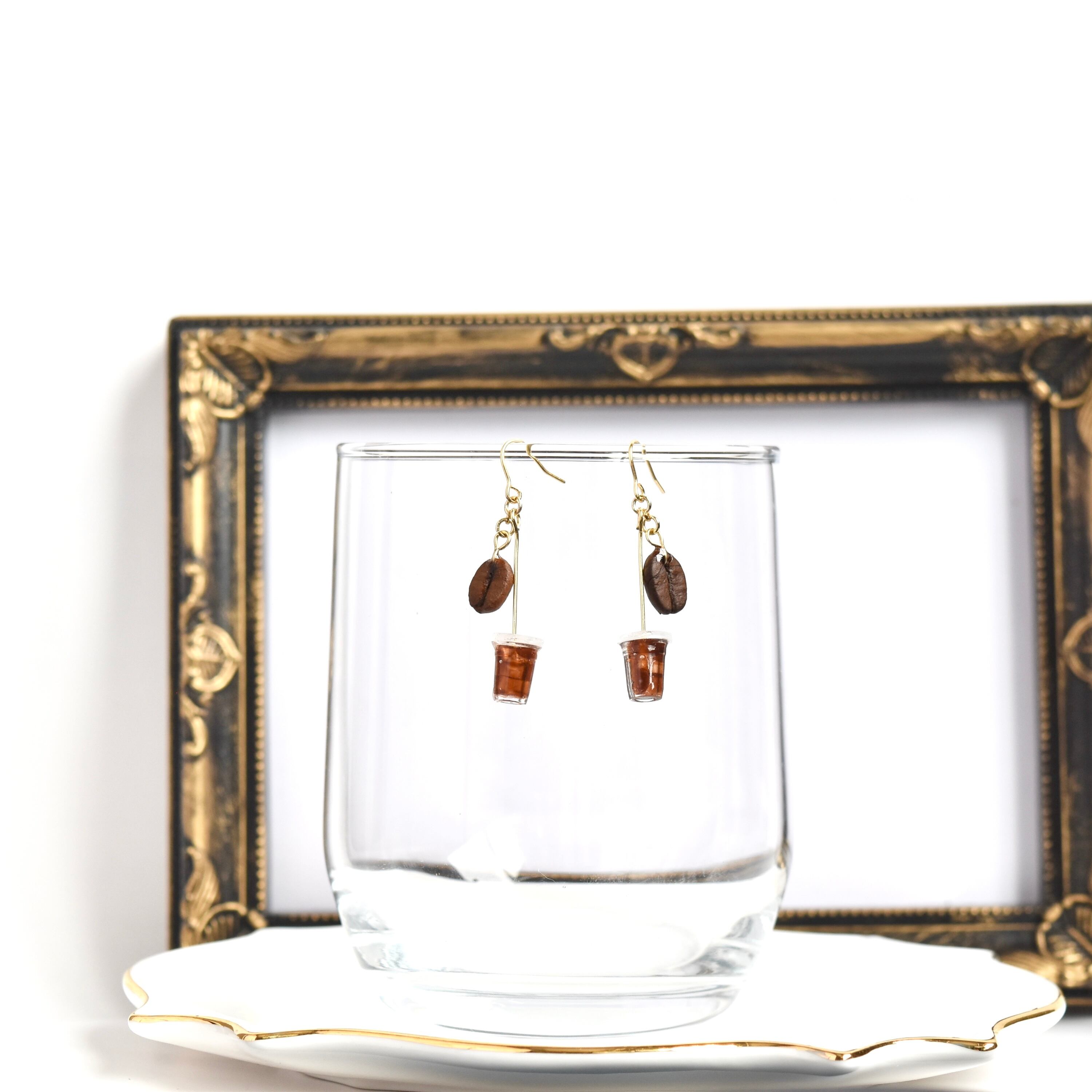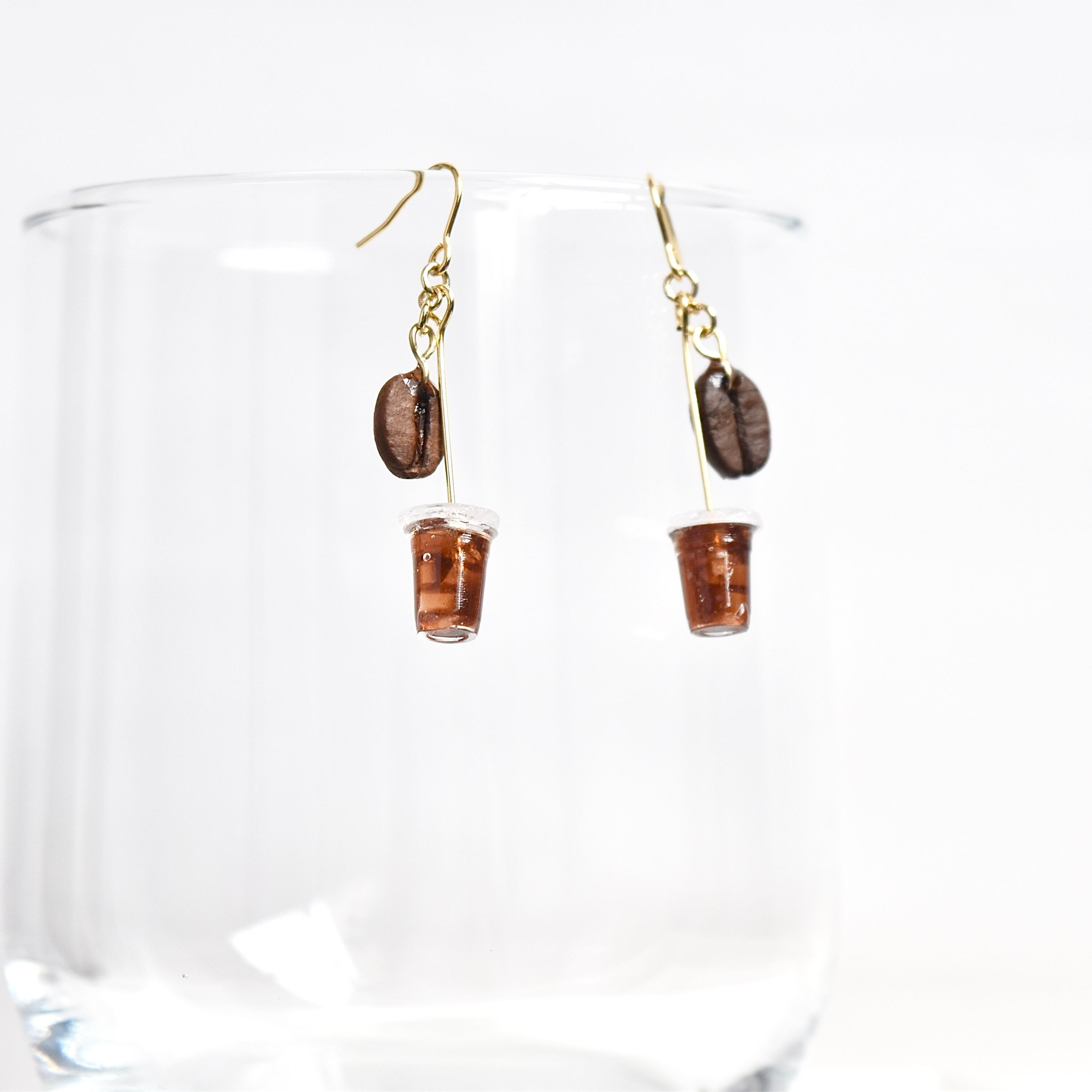 レトロ水彩カフェ*氷たっぷりテイクアウトアイスコーヒー(蓋あり)ミニチュアと本物コーヒー豆ピアス/イヤリング オリジナルディスプレイ台紙付き【個別発送】(珈琲豆/アクセサリー/喫茶/バリスタ/カフェ雑貨/大人かわいい/天然/きらきら/ナチュラル/韓国/シンプル/おしゃれ//リアル/レジン/色ガラス風/透明感/スタンド/クリア/ティー/茶/フェイク/フード/北欧/アンティーク風/ヴィンテージ風/コーヒー好き/カフェ/プレゼント/ギフト/お祝い/誕生日/記念日/推し活/カジュアル/ユニーク/ラフ/個性派