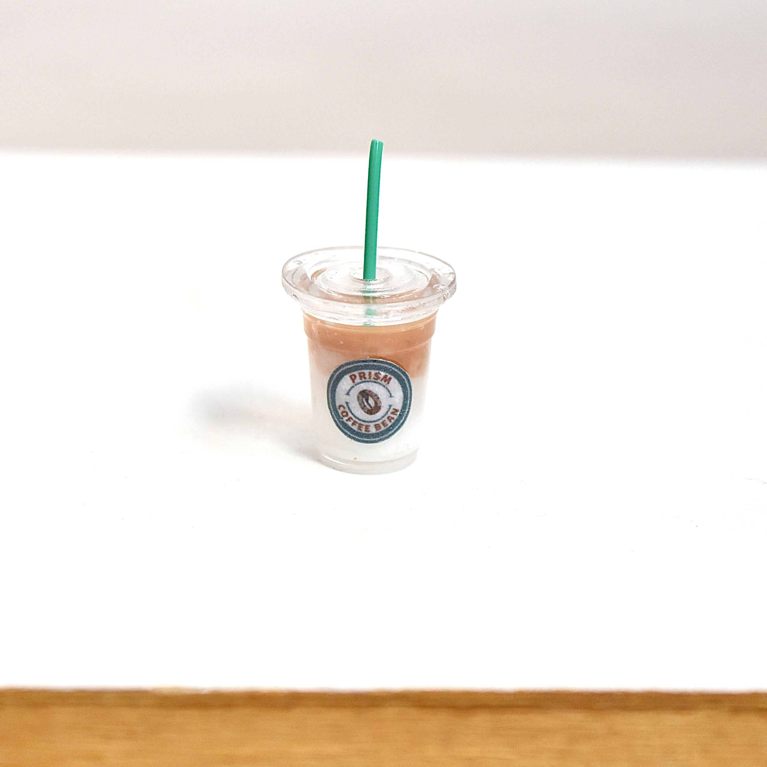 レトロ水彩カフェ*可愛いロゴ入りテイクアウトアイスカフェラテ(カフェオレ) ミニチュア 1点 オリジナルディスプレイ台紙付き【個別発送】(小物/リアル/ドール用/フィギュア/撮影/おもちゃ/玩具/ぬい/10cm/11cm/20cm/30cm向け/推し活/フェイク/フード/スイーツ/カフェ/喫茶/お菓子/ドリンク/撮影/ぬいぐるみ/ぬい撮り/ねんど/どーる/1/12/1/8/1/10/1/6/コーヒースタンド/ショップ/レストラン/メニュー/おうち/おやつ/アウトフィット/インテリア/飲み物/