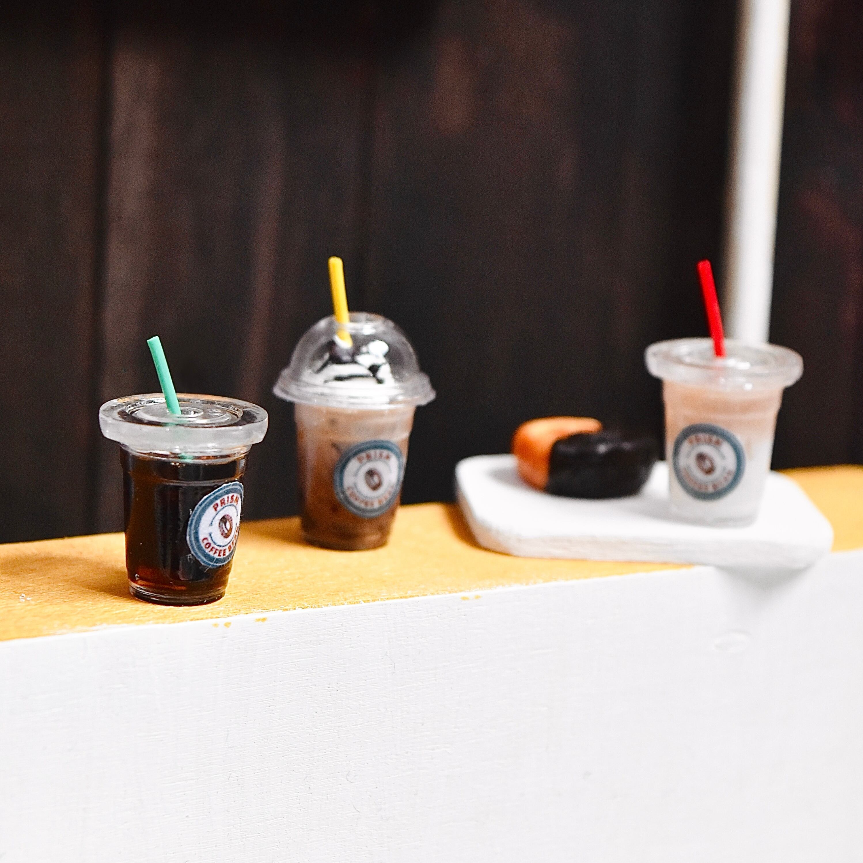 レトロかわいいカフェのメニューをイメージした、オリジナルカフェドリンクのミニチュアです。