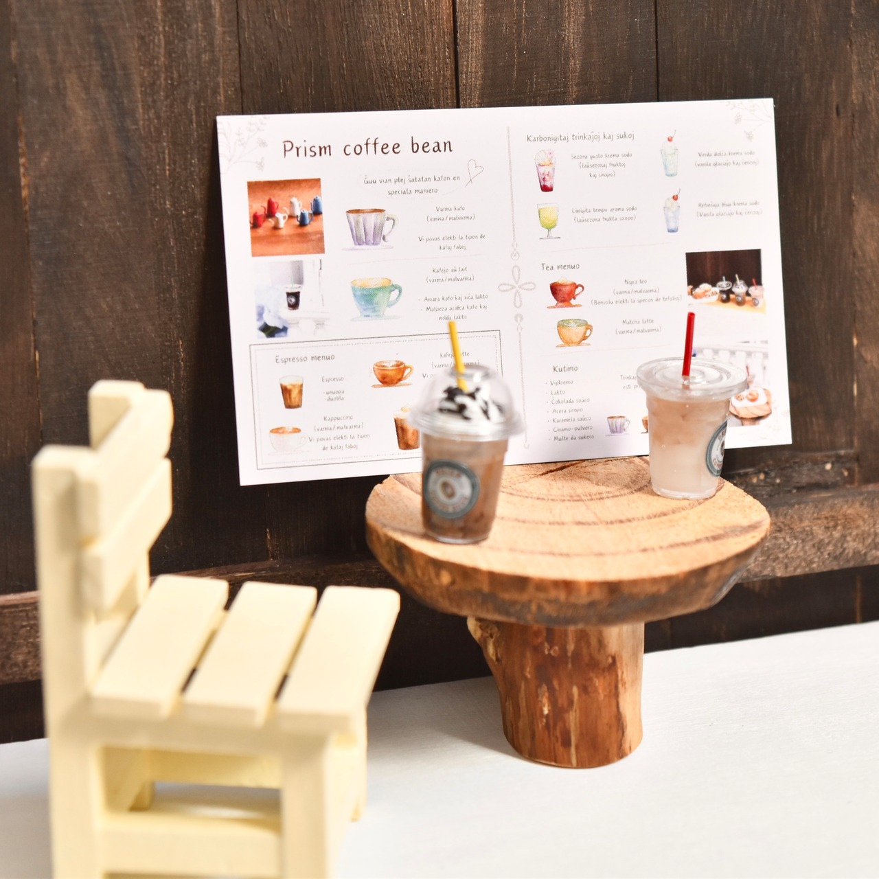 夏の喫茶店のドリンクメニューをイメージした、オリジナルカフェドリンクのミニチュアです。