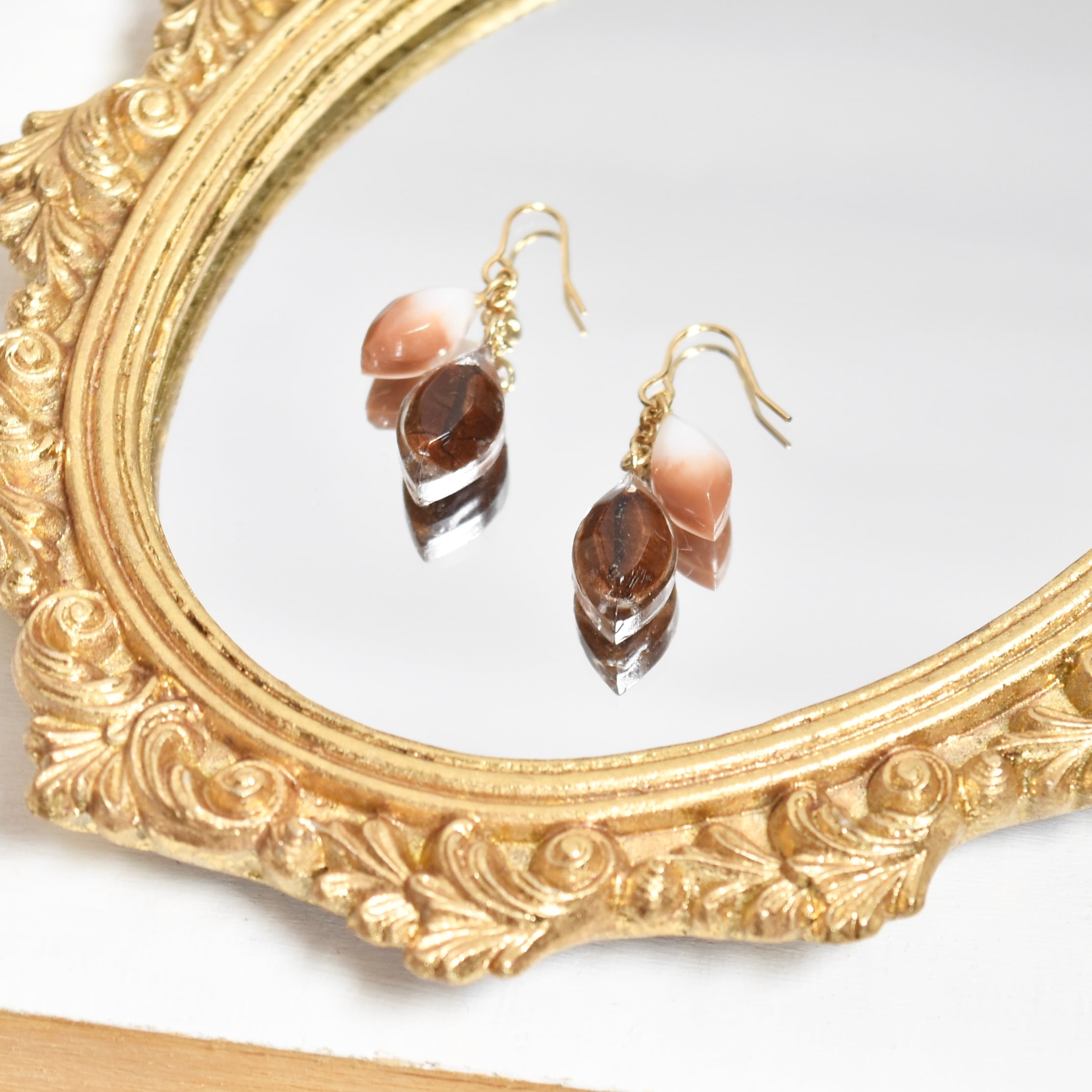 素敵な珈琲時間*カフェオレ宝石と珈琲結晶 ピアス/イヤリング【個別発送】(珈琲豆/アクセサリー/喫茶/バリスタ/カフェ雑貨/大人かわいい/天然/きらきら/ナチュラル/韓国/シンプル/おしゃれ/フェイク/オケージョン/きれいめ/ボタニカル/上品/エレガント/アンティーク風/ヴィンテージ風/大人かわいい/コーヒー好き/カフェ/プレゼント/ギフト/お祝い/誕生日/記念日/秋アクセサリー/コーデ/カジュアル/モダン/トレンド/コーディネート/女子会/ランチ/デート/個性