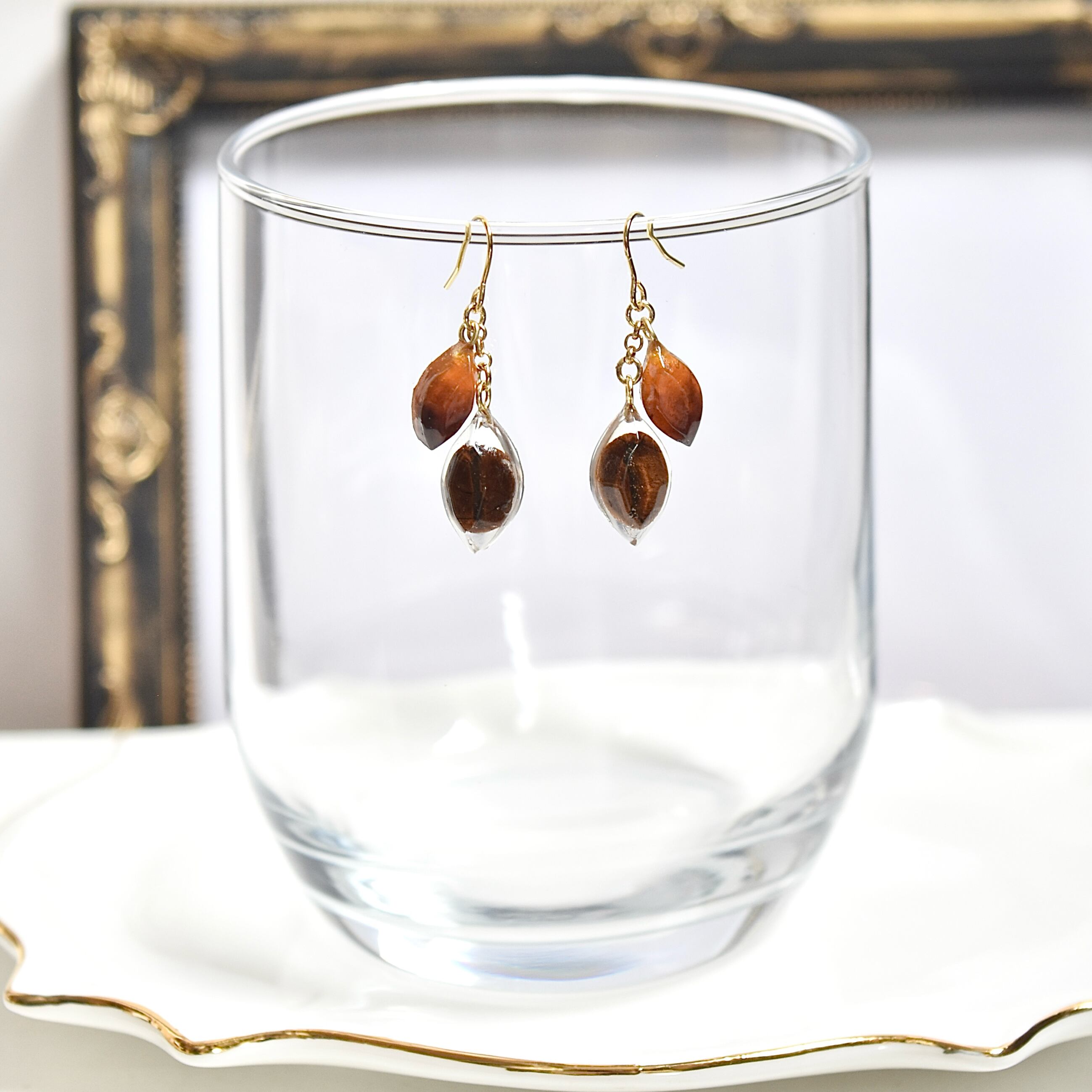 素敵な珈琲時間*深煎り珈琲宝石と珈琲結晶 ピアス/イヤリング【個別発送】(珈琲豆/アクセサリー/喫茶/バリスタ/カフェ雑貨/大人かわいい/天然/きらきら/ナチュラル/韓国/シンプル/おしゃれ/フェイク/オケージョン/きれいめ/ボタニカル/上品/エレガント/アンティーク風/ヴィンテージ風/大人かわいい/コーヒー好き/カフェ/プレゼント/ギフト/お祝い/誕生日/記念日/秋アクセサリー/コーデ/カジュアル/モダン/トレンド/コーディネート/女子会/ランチ/デート/個性
