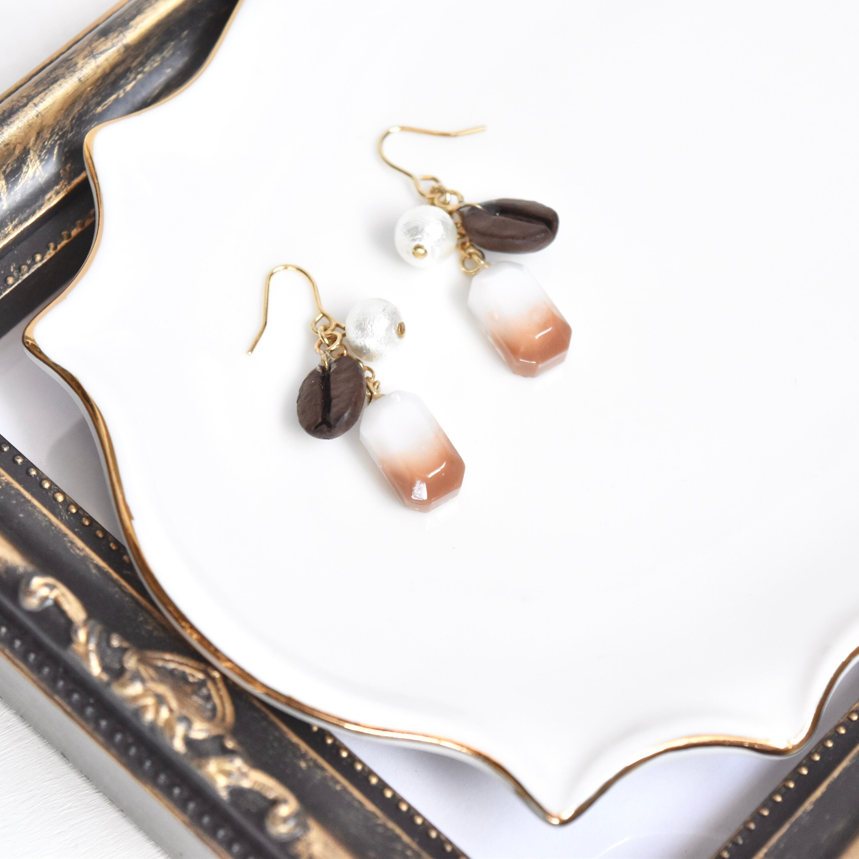 本物コーヒー豆がゆらゆら揺れる♪コットンパールとミルクたっぷりカフェラテ ピアス/イヤリング【個別発送】(珈琲豆/アクセサリー/喫茶/バリスタ/カフェ雑貨/大人かわいい/天然/きらきら/ナチュラル/韓国/シンプル/おしゃれ/フェイク/オケージョン/きれいめ/ボタニカル/上品/エレガント/アンティーク風/ヴィンテージ風/大人かわいい/コーヒー好き/カフェ/プレゼント/ギフト/お祝い/誕生日/記念日/秋アクセサリー/コーデ/カジュアル/モダン/トレンド/コーディネート/女子会/ランチ/デート/個性